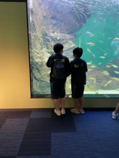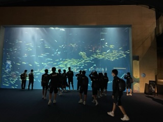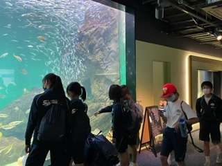 四国水族館で、優雅に泳ぐ魚たちを観賞しています。