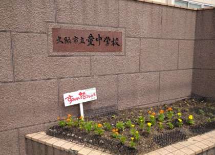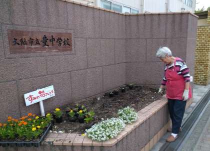 本日、地域の「花フレンズ」の方が正門の所にきれいなお花を植えてくださいました。