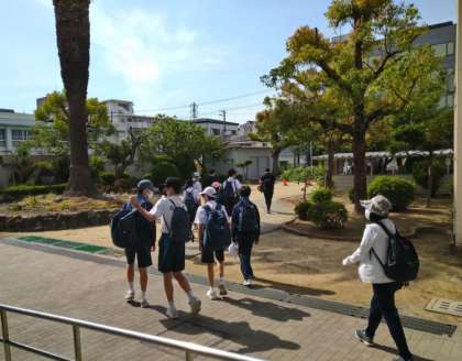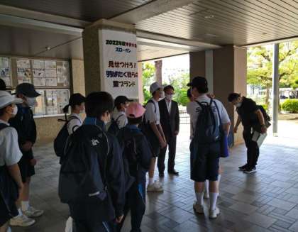 出発時、校長先生から激励を受け、出発しました。がんばってください!