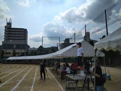 生徒会長の開会宣言で、第74回体育大会の幕が開きました!