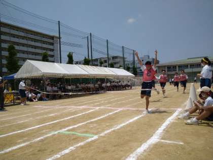 200メートル走がスタートしました。トラック1周です。勝ち負け問わず、全力を尽くしてください!