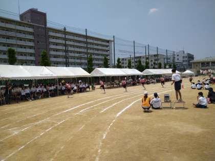 200メートル走がスタートしました。トラック1周です。勝ち負け問わず、全力を尽くしてください!