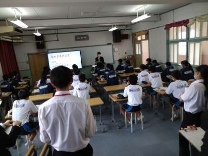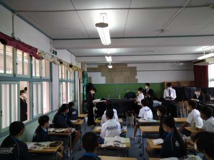 実習生、先生方、教頭・校長先生と数多くの先生が見学されました。