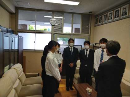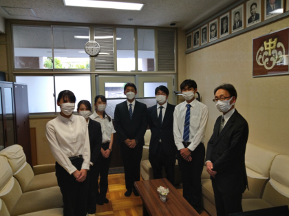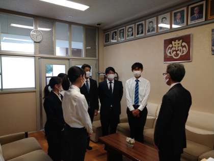 6人の実習生が、校長先生に実習を終えてのお礼に来ました。