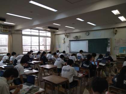 自習は、一人一台端末を使い、学習をしていました。期末テスト頑張ってください。