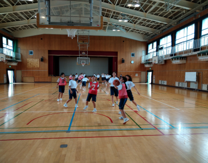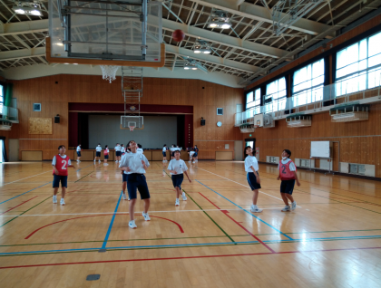本日の6限目、体育館で体育の授業が行われていました。3on3が行われていました。