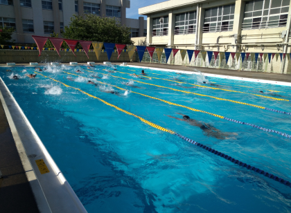 格技室では、柔道部と少林寺拳法部が顧問の先生方からの指導を受け、頑張っていました。プールでは、水泳部が水しぶきをあげ、熱心に取り組んでいました!次の大会に向けがんばれ!
