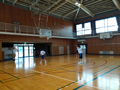 今週ラスト一日が始まりました!今日も暑い一日です。朝早くから男子バスケットボール部が、大会に向けて朝練に励んでいます!ナイスシュートです!