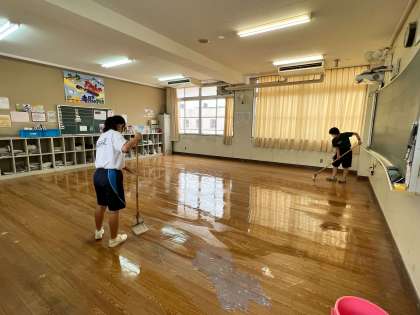 3年生は手慣れたものです。掃き掃除をし、きちんとワックスがけをしてくれました。美化委員も、先生も頑張っています!月曜日からが楽しみです。ありがとうございました。