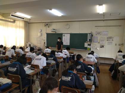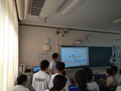 1年生の授業の風景です。英語では、クイズを解いて復習し、国語では、暑中お見舞いはがき作成を行いました。