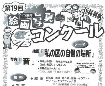 第19回中学生絵画・写真コンクールについてお知らせいたします。