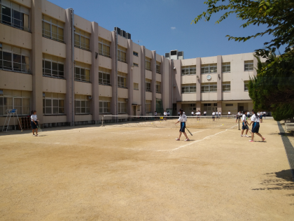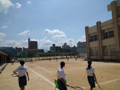 中庭テニスコートでは、ソフトテニス部がサーブ・レシーブの基本練習を行っていました。3年生は、明日、大会を控えています。頑張ってください!