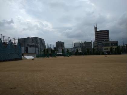 グラウンドでは、野球部が練習をしています。