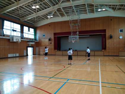 男子バスケットボール部のみなさんが、シュート練習をしていました。