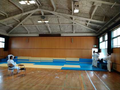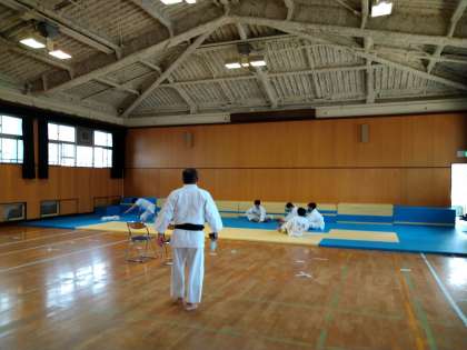 格技室では、柔道部の練習が行われていました。水分補給をしっかりと摂りながら練習に励んでいました。