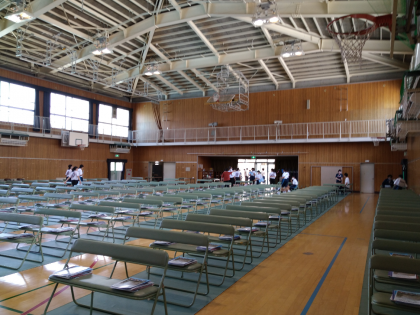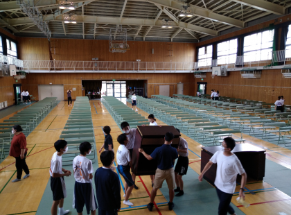 最後に、それぞれの座席に各学校のパンフレットを置いてくれました。明日の準備が整いました。女子バスケットボール部のみなさんと男子バスケットボール部のみなさんもお手伝いをしてくれました。明日の準備がスムーズにできました。