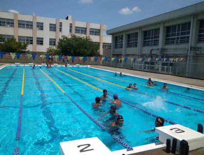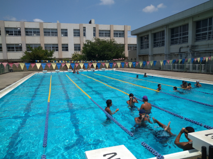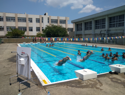 本日、朝から水泳部が水しぶきをあげ、練習に励んでいました。大会が近づいてきております。体調を整えて、頑張ってくださいね。