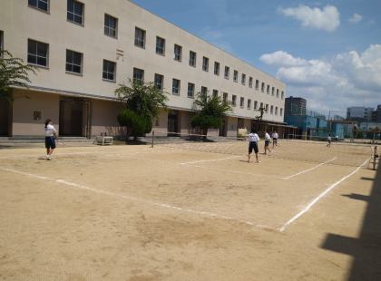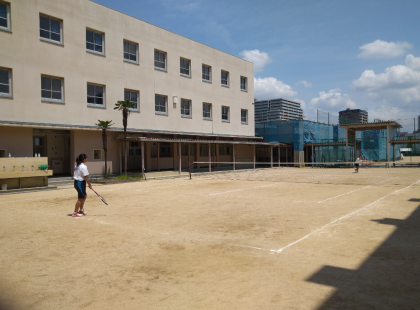 本日も中庭テニスコートでは、ソフトテニス部のみなさんの練習に打ち込む様子が見られました。ラリーが続いていました。