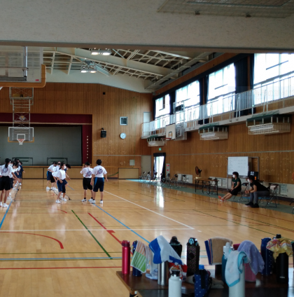 体育館では、女子バスケットボール部のみなさんがトレーニングに取り組んでいました。