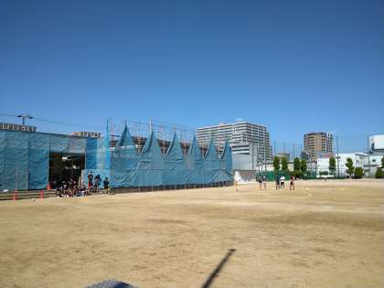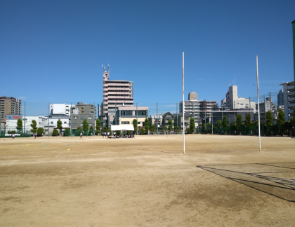 グラウンドでは、陸上部とラグビー部が場所を分け合って練習に取り組んでいます。
