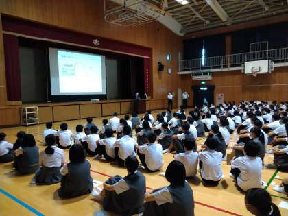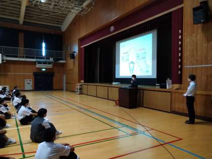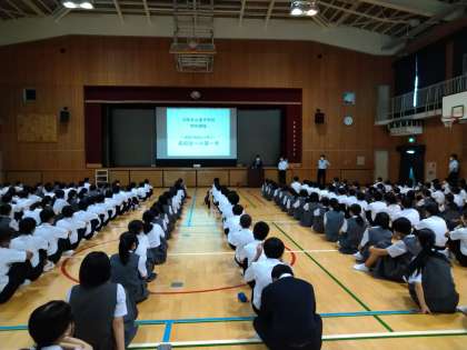 本日2年生は、将来に向けての「進路講話」を聞きました。Teamsの接続に問題があり、急遽、体育館に移動しました。2年生のみなさん、素早く行動していただき、ありがとうございました。外部より講師の方をお迎えし、講話を聞きました。将来に役立つ貴重なお話、ありがとうございました。