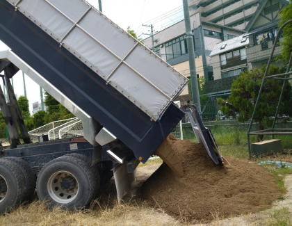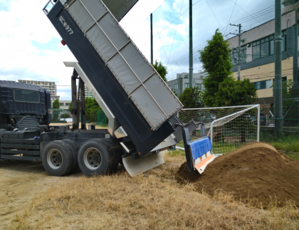 本日、グラウンドに新しいとてもきれいな土が搬入されました。