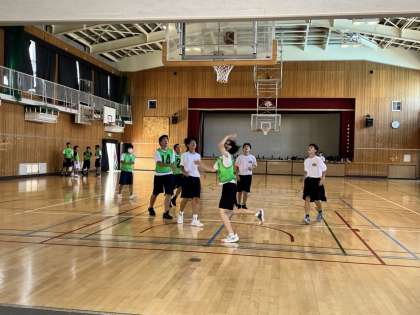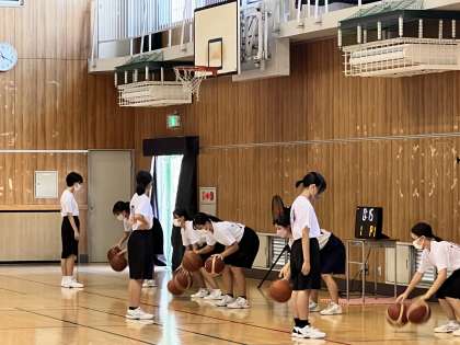 体育館では、男子バスケットボール部の練習、その後、女子バスケットボール部が練習に取り組んでいました。