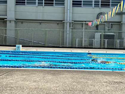 プールでは、水泳部が18日のブロック大会に向けて調整をしています!