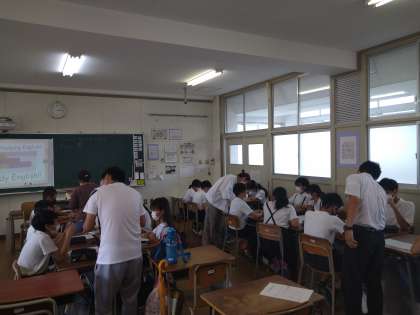 英語は、ペアワークで先生からの「ミッション」を遂行していました。