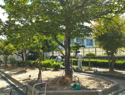 日中は気温も上昇し、蒸し暑い中でしたが、中庭の植木の剪定をしていただきました。