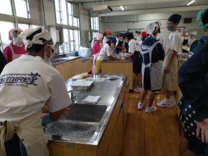 今日の3限目に2年生の調理実習が行われていました。