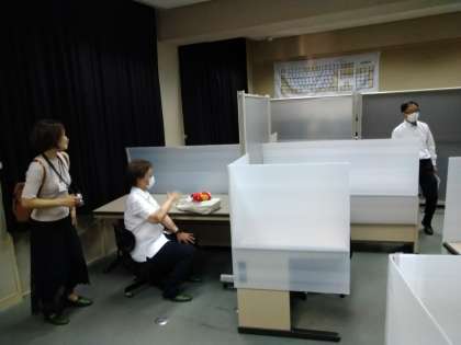 昨日、区長をはじめ区役所の方々が、本校の「スクールサポートルーム」の視察に来られました。生徒のみなさんが、安心して学習できる環境を確認していただきました。区役所と連携を図り、スクールサポートルームの運用について、話し合いを重ねてまいりました。いよいよ9月より、運用開始となりました。
