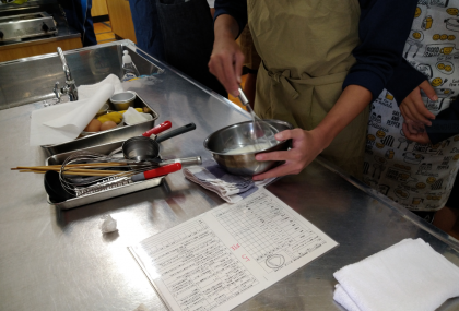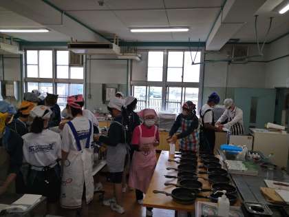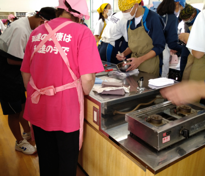 本日も2年生でお菓子作りの調理実習が行われました。今日も、区役所・地域の方々がお手伝いに参加してくださいました。ありがとうございました。しっかりと先生の話を聞き、調理がスタートしました。校長先生、担任の先生の見守る中、手際よく調理が進みました。