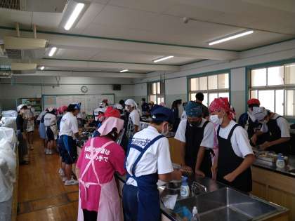 2年生のみなさんが、とても器用に調理していました。みんなで協力し、楽しく実習をしていました。