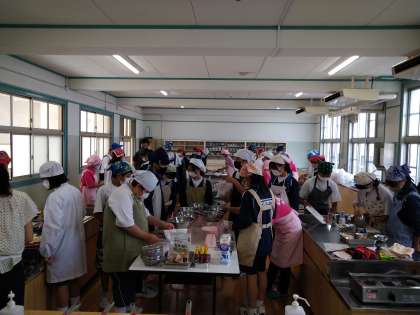 本日も調理室では、家庭科調理実習(2年生)が行われていました。