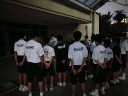9月末になり、新体制の部活動が増えました。バスケットボール部の最後のミーテイングの様子です。2年生の先輩が、全体に向けて、その日の練習の雰囲気の確認や今後に向けての話をしていました。とても堂々と話をしていました。次の大会に向けて、がんばっています!