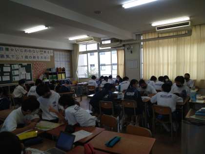 3年生は、テスト計画と自主学習をしました。姿勢を正して学習できていました。