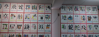 上は美術展示。下は、放送部の放送劇を聞いている様子です。