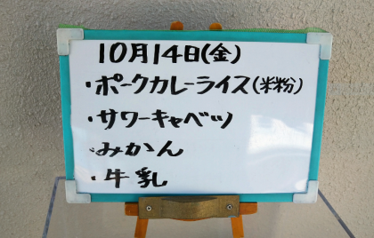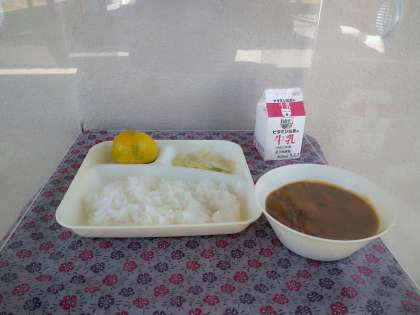 ポークカレーライス(米粉)、サワーキャベツ、みかん、牛乳でした。