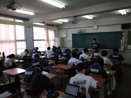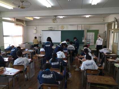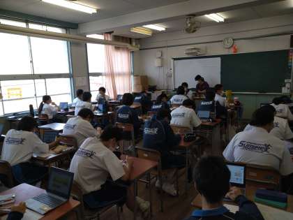 2年生は、3年生に向けた卒業記念品の作成をしていました。一所懸命に「コルクボード」の作成をしていました。一人一台端末を使ってデザインをしている人もいました。どんな作品ができるのでしょうか?