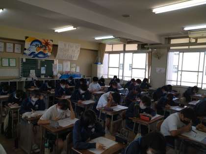 3年生は、GTECのプレテストに取り組んでいました。授業の後半にクラスを覗いたのですが、3年生のみなさんは、一所懸命に問題に取り組んでいました。さすがは3年生です!