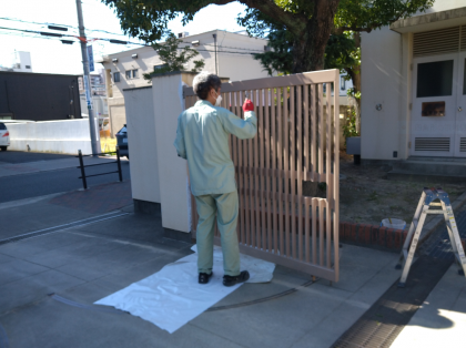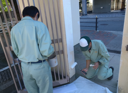 今日も管理作業員さんが、南門をきれいに塗装してくれました。正門も南門もきれいになりました。いつもありがとうございます。