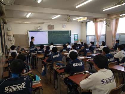 授業者の先生が準備されたパワーポイントが分かり易く、また、とてもいいテンポで授業が展開されていました。英会話のことばのキャッチボールが印象的でした。