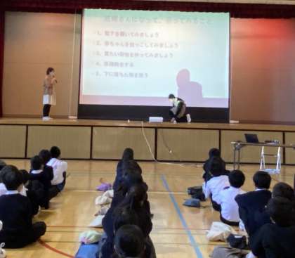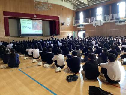 本日6限目、1年生は性教育を行いました。済生会野江病院の助産師さんをお招きし、貴重なお話を聞き、体験ができました。パワーポイントを使っての「生命の誕生」の説明、代表生徒による妊婦体験を行いました。ありがとうございました。