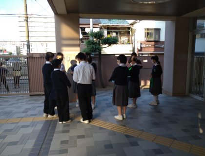 ※写真は、朝の登校時の風紀委員の仕事を終え、ミーティングの最中です。