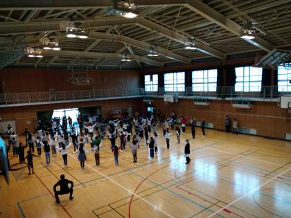 校長先生の開会のおことばで、場が和んだのち、ラジオ体操でスタートしました。