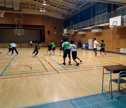 体育館では、バスケットボール部、中庭ではソフトテニス部が活動しており、グラウンドでは、ラインアウトの練習をしているラグビー部の様子も見られました!寒さに負けず、がんばっています!