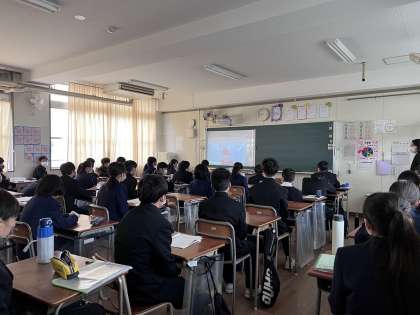 1年生の終業式の様子です。姿勢よく話が聞けています。
