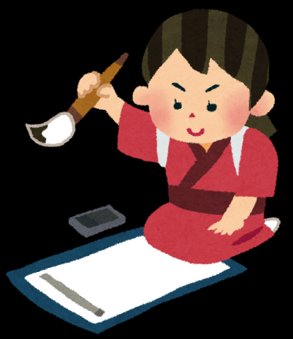 邪気を除くとされる若水(わかみず)で墨を摺り、恵方に向かって詩歌を書く習慣があり、もともとは宮中で行われていた儀式だったそうです。江戸時代以降は庶民にも広ままったようです。書き初めで書いたものは火祭りの「左義長(さぎちょう)」で燃やし、その炎が高く上がると字が上達すると言われています。
