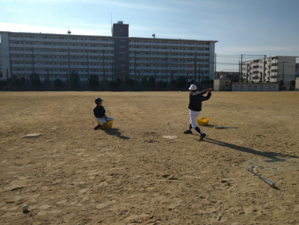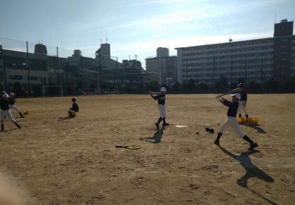 グラウンドでは、野球部がロングティーに取り組んでいました。「ナイスバッティング!」を披露してくれました!がんばっています、野球部!!